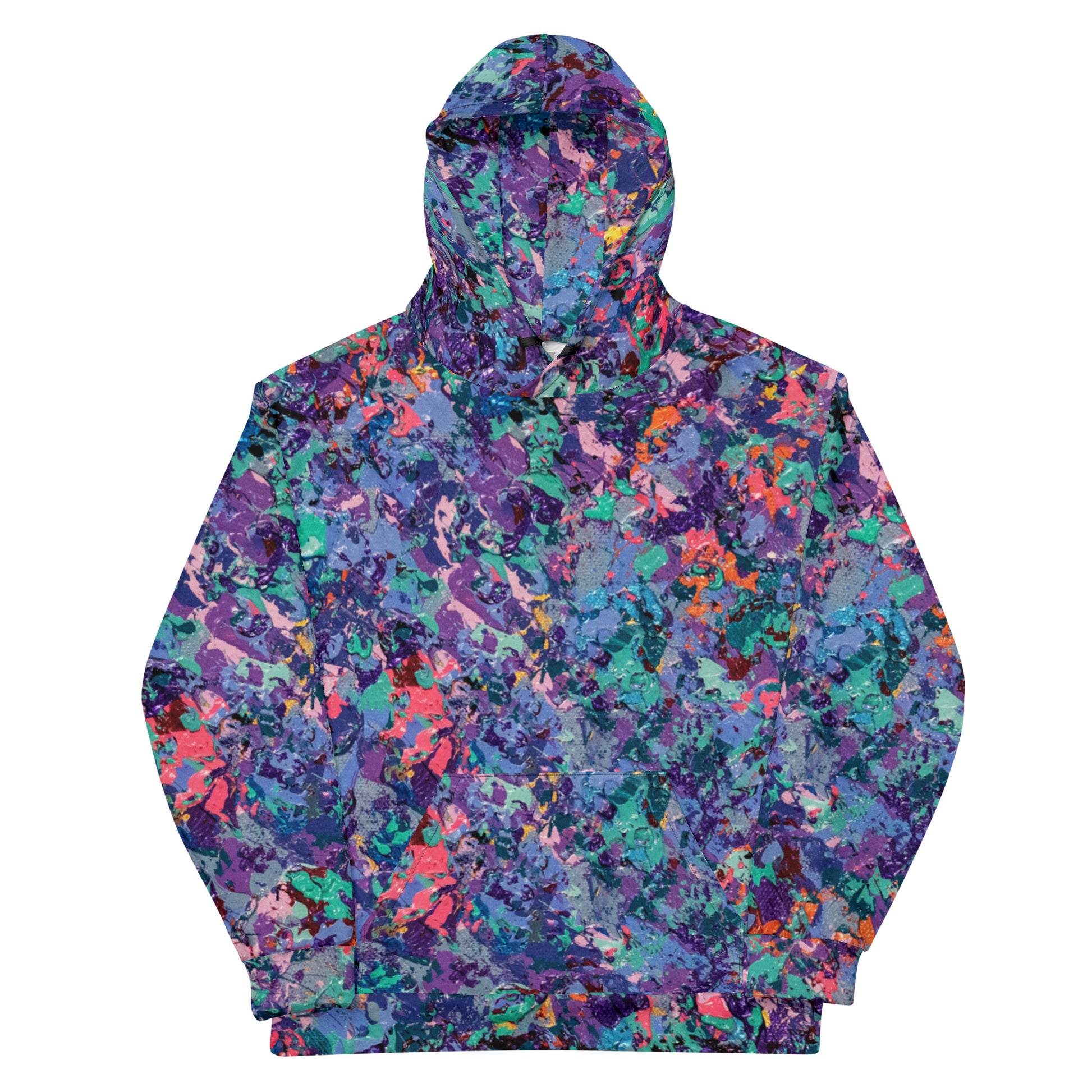 This comfy unisex hoodie has a soft outside with a vibrant print and an even softer brushed fleece inside. The hoodie has a relaxed fit, and it's perfect for wrapping yourself into on a chilly evening.